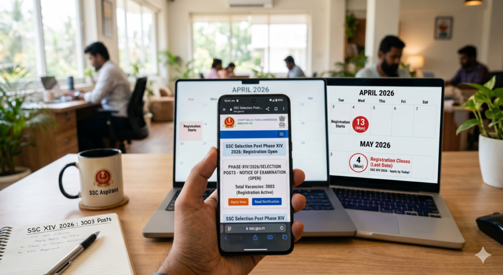 कर्मचारी चयन आयोग (SSC) ने उन सभी युवाओं के लिए एक सुनहरा अवसर प्रदान किया है जो भारत सरकार के विभिन्न मंत्रालयों और विभागों में सरकारी नौकरी का सपना देख रहे हैं। SSC Selection Post Phase XIV 2026 का आधिकारिक नोटिफिकेशन 13 अप्रैल 2026 को जारी कर दिया गया है। इस भर्ती के माध्यम से कुल 3003 रिक्त पदों को भरा जाएगा।